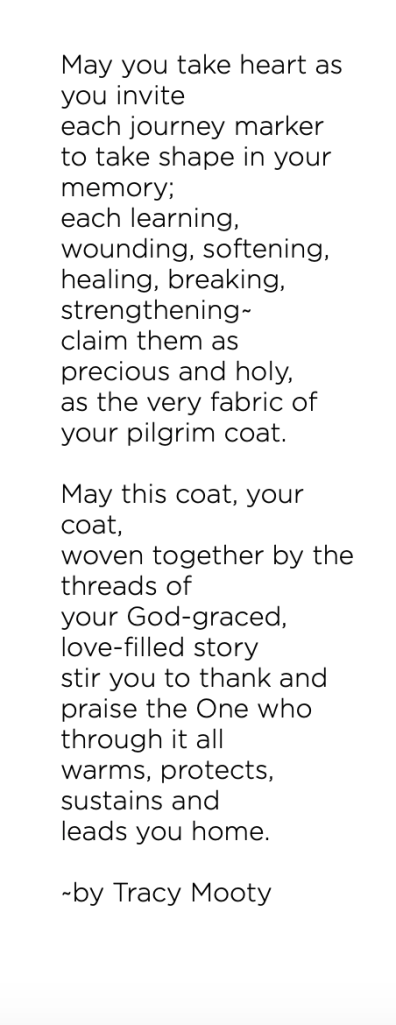 - How do you envision the symbolic pilgrim coat you’ve worn throughout your life? How does it reflect the many turning point stories and messages that have served to guide and inspire you?