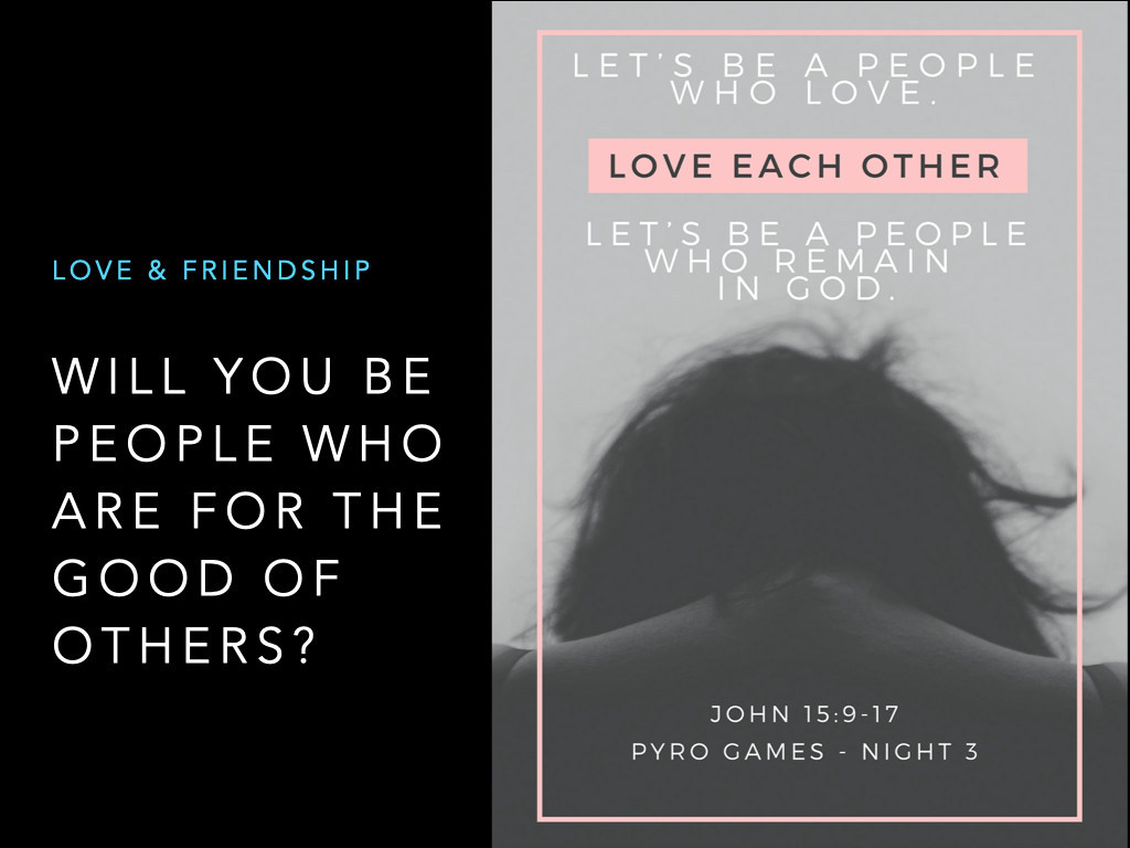 If you’re willing to be a person who will choose love, to remain in God’s love and love one another?