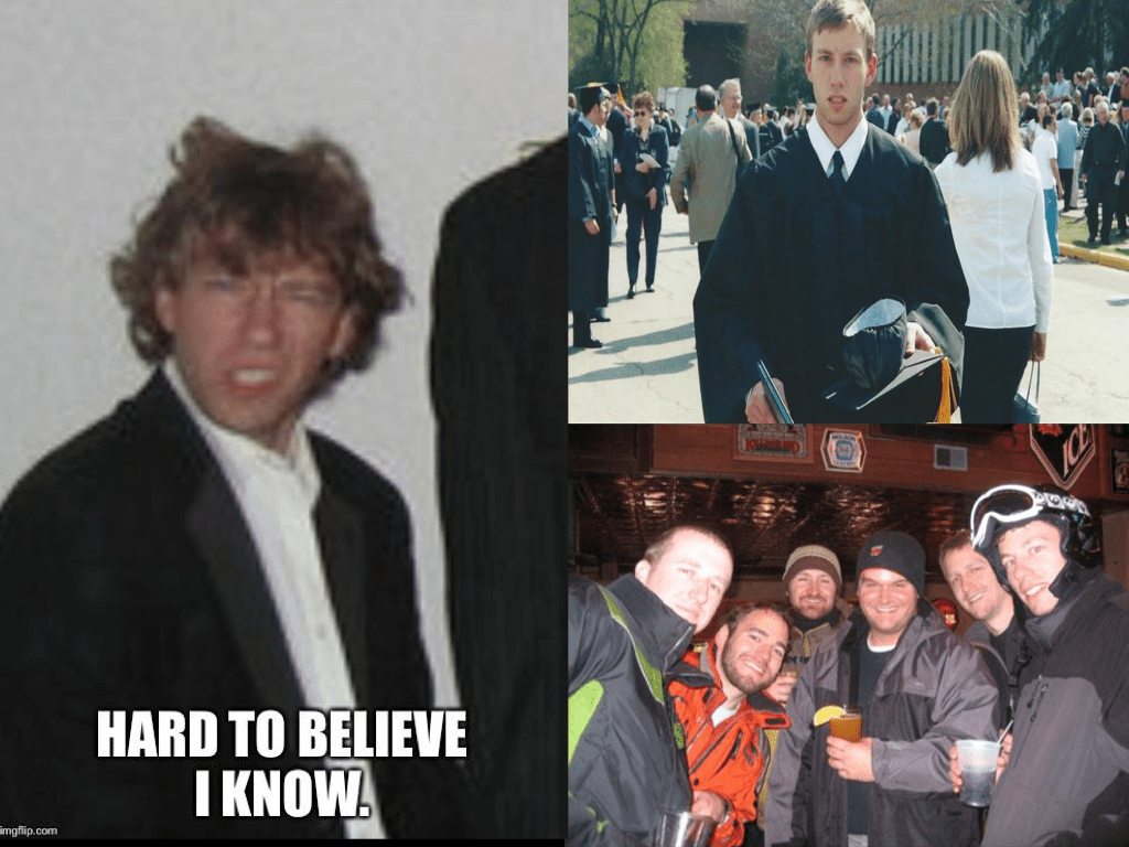 That’s current Sara, and young Andy, mostly because I missed Andy and wanted to talk about him. Well…that and because we both were t two young people, who through our lives, had learned to hide; people who didn’t believe that we were enough or worthy of love. And while I responded by trying to be perfect and the good girl, Andy responded by trying to be the wingman and the sports guy, and just kind of like, to go under the radar. That’s me at my first youth camp that I worked at. The bottom right is actually me at a youth group “un-prom” gathering (yes, it’s root beer in the keg).