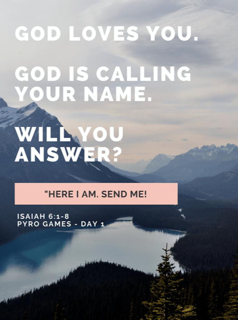 On our first night of camp, we talked about this God of love, who many of you have known in your lives, the God who calls each of us by name. The first question that I want you to consider then is: “How are you going to respond? Will you say, ‘Here I am. Send me’?”