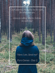 So… Will you be a people who will be disciples of Jesus, refusing to play the game by the rules, and instead, being who God has and called and invited you to be? If so, let’s join together. “Here I am. Send me.”