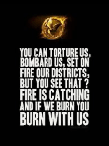 The power of The Hunger Games is that as people began to be who they were and stand up, the districts started revolting. 74 years of nothing and suddenly, together, they began to do something different—as they say in the film: “Fire is catching.”