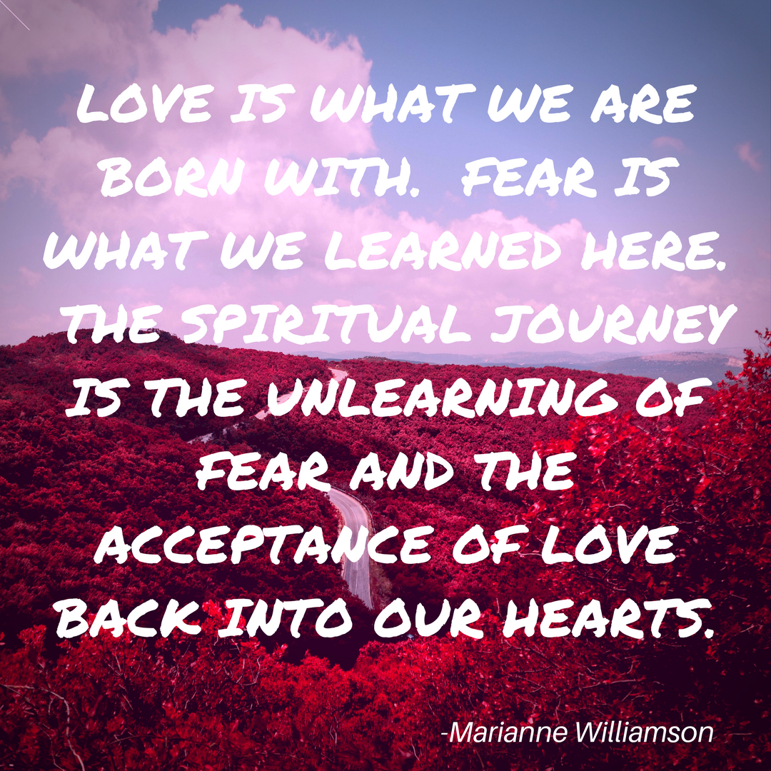 A friend of mine posted a quote on an Instagram a few weeks ago that read. “Love is what we are born with. Fear is what we have learned here. The spiritual journey is unlearning of fear, and the acceptance of love back into our hearts.”[3]